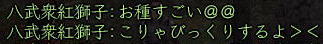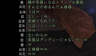 ![]() 八武衆紅獅子です。 すんません、またウソつきました。 ![]() 紅子です。 背景が赤いのは・・・・ ![]() めちゃめちゃにやられてるからです・・・・ もう、死にそうです・・・ 紅子です・・・ でもいいんです。 紅は、鍛冶屋ですもの。 殴られてなんぼです。 いや、器用な鍛冶屋ならよけろって話しだろーw でもこんなに血を噴いてるのに、 生きてるってすごいですよね。 生きるって素晴らしいことですよ・・・アハハ・・・ そんなことはさておいて。 「TDいこー!」 と、誘ってくれたのは、今日はお花薬師のほうでしたw 採取に疲れていたあたしはもちろん 「いくー!w」 と返事をし、 お花・お茶・狸おんも・紅でTD徒党結成w TD前にお弁当を買いに武蔵に行くことにした紅。 最近軽くて安くて価値8な 浅草のりか桜餅がお気に入りの様子。 そんで、強行もらって武蔵入り〜 考えてみたら飛龍はじまって初めての食料調達w って、おぉ〜〜!!! 茶屋のおやじ、ダンディー!! どんだけダンディーかっていうと、 ![]() こんくらいダンディw この声に反応して、武蔵までかけこんできた狸おんも。w 「おやじだ」 「でぶだ」 「ひげだ」 つっこまれまくり・・・・・www お茶忍者にいたっては・・・ それは褒め言葉ですか 褒め言葉なんですかー!?ww これが紅の思う「ダンディー」なの!ww ちなみに、このせいで今日のダンジョン中の 「宝箱を開ける時にたまにトラップがある」という会話で。。。 ![]() しまいには、 「お茶忍者のリアル顔は茶屋」 というわけわからん結論になってしまいましたとさw ![]() 「ちゃら〜〜〜んw」 そんなこともどうでもいいのだw ダンディ茶屋をきっかけに 甲府や甲斐を散歩しまくる4人。 一向宗がおもしろいと言われれば 追尾かけてみんなで一向宗を見にダッシュw 毒蛇が足装備落としたと聞けば、 レベル45の二人で毒蛇退治にお出かけw 「綾乃が結構美人だ」 といわれれば、綾乃ちゃん探しにいくし。w ちなみに綾乃ちゃんがこの方w ![]() ちなみに、綾乃が言いました。 なにかあったんですか@@ 綾乃ちゃん! もの知り爺はこんな顔。w ![]() いい〜笑顔じゃないですか! そして今日のびっくり大賞は・・・ お種もともとはこんな顔なんですが・・・ ![]() アップにするとこんな感じw ![]() ![]() こんなリアクションくれる狸はこんな人w ![]() 本人二重あご気にしてたけど、 大丈夫だってw ・・・タブンw そんなこんなで遊んでいると ![]() あ、はいw TD前にめちゃくちゃ遊んじゃったw でも、こういうノリ好きなのよね、エヘw |