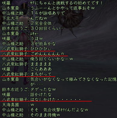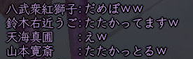 ![]() こばちょんw カリアゲ紅子です。イェーイ。 ひさしぶりぶりの 絵日記になっちまいました。 最近ハァハァしてなくてさー (*´д`*) んでも、ひっさしぶりに ハァハァするところに行ってきたじぇ〜。 その名も・・・ ![]() カチャカチャ回ってる カラクリおさーんこと 析雷です! むっつん鍛冶のマキャン突破をこなし、 勢いよく 析にたどり着いた 我らがA4(=アフォ)徒党。 (アフォはベニコだけという噂も・・・(*ノノ ) まー、とりあえず たどり着くまで怪我人でちゃったので 時間があります。 その間やることといったら やっぱりコレ。 ![]() ゴンちゃん僧を ペチペチ ペチペチ。 強い敵は、ゴンちゃん(ハゲ)を叩いてからですよ! ちなみに、ハゲの知人といったら ![]() こんなステキな方もおりますが・・・ あー、ペチペチしてぇw と、いうことはさておき。w ![]() いつの間にか、囲まれて 集団ペチペチ状態の ゴンちゃん僧。 (ちなみに転生要員w) すっくと立ち上がり、 あたしたちに 一喝! が、すぐに ![]() うごちゃんによって 剃り残しを引っ張られる始末。 がんばれ 僕らのゴンぞー院!(笑顔 とか やってる 流れでね。 析をペチペチしようとしたのですよ、あたし。 するとね、 なんとまー、不思議なことが・・・ ![]() えっと、・・・ ![]() タゲってしまった・・・・・。 ![]() もうすぐ怪我が治りそうで、 作戦タイムに移ったときに なんてことやっちまったんだいw まじで あたしのバカバカバカ!!! ヽ(`Д´)ノウワァン ![]() しかも この実装。 一体何を掘る気!? ![]() ![]() 当然のことながら 1人去り、2人去り・・・ みんなが脱党して行きます。 ![]() 淋しい気持ちをグっとこらえて 覚悟を決めた瞬間、 ![]() さっきまで ペチペチやってたゴンぞー院から神の声@@! ![]() すでに、お花が近くの敵を眠らせてくれていて そこまで走ればきっとタゲが切れるというではないですか! よっしゃ、走るでー!!! ・・・・・って ・・・・・ ![]() なんで戦ってるのさー Σ( ̄ロ ̄lll) ![]() ど、ど、どーやら 時間ギレだったようです・・・ ![]() 当然、あうーんw ええ、やっぱり お紅です・・・・えへへ。 ![]() とりあえず、転生もらったあとは 穴があったら入りたいくらい恥ずかしく 埋もれておきました。 ![]() お詫びといっちゃーなんですが、 なけなしの潜在も 回復力に2ほど振っちゃいました。 あぁ、これで少しでも回復が早まれば・・・!!! で、気がつけば ![]() 周りでみんなが埋もれてます。 ベニコの半分は、みんなの優しさでできているのです。(ノ_-。) (残りは肉壁・・・あはーんw) ![]() そして待つこと数十分・・ いよいよ怪我が回復し、 析へのトライが現実に・・・! 願掛けその2。 勝負前にお辞儀をする・・・も 無事にこなし (ちょっとドキドキです) ![]() ついに、勝負開始! 構成は 上から ベニコ鎧・むっつん鉄砲・おまほ僧・うご武士道・ゴン薬・お花巫女・お茶刀鍛冶 と、 見事に鍛冶屋3特化揃い踏み! えぇ、看破もち うごちゃんだけという スリル満点ステキ徒党です! ![]() さてさて カラクリおっさん、ご機嫌はいかがかにー?? ![]() ひぃw なんか、やたらめったら 詠唱韻・極みが多いんですけどw うごちん泣かせか?コンチキショイw ![]() ![]() とりあえず 鍛冶屋2人は極みまーす。w 切れたら 即死必至!! ![]() お花の気合や詠唱にサポートしてもらい、 ![]() たった一人の侍うごちゃんには サポから盾から オールマイティに活躍してもらい、 ![]() ナイス武士道と、絶賛の嵐w ![]() 攻撃の要は もちろんこの方。 エースはチミだ! むっつん鉄砲。 3匁を 惜しみなく使う ブルジョア鉄砲。 しかし、0距離といい、乱射乱撃雨霰といい すばらしいアタッカーだじぇ! と、まぁ、・・・・開幕は安定していたのです。 が、しかーしw ![]() おまほが大往生の準備・・・ えぇ、せざるを得ないくらい 追い込まれ始めたあたしたち。 ごめん、あたしの罵倒で 析を引ききれなかった・・・・ショボン。 ビリビリ攻撃やら 術やらで どーにも こーにも にっちもさっちも いかない状態。 ![]() そこで、お花の援護ですよ! よくやった! 感動した! 全米が泣いた! ![]() そんな折、 ゴンちんに蘇生をもらうあたし。 はい、すでにベニコ死んでます。えへ。 もはや、第一盾が崩れてしまっては・・・・ 更に、 情け容赦ない析の攻撃は あろうことか 旗のゴンちんに直撃を食らわすのです! ![]() 焦ったゴンちん、 誤爆博士全開! うん、まずは 作るところからだろうなw 組成・・・組成・・・ ( -_-) フフ ![]() 大暴走した析の攻撃は なおもゴンちんに降りかかり ![]() ついに、旗折れ・・・ 一番胸が痛む瞬間です。 守れなくてごべんね(ノ_-。) ![]() お花だけなんとか逃亡に成功。 あとは、ご覧のとおりw A4なみなさん バッタバッタと重なりまくりです。 あうーんw まー、あれだ。 ちょっと甘く見すぎてたなw 次こそ、絶対析突破!! 新たな目標ができました。 打倒:析雷! ベニコはまだまだ頑張ります。w ちなみに・・・ 死に間際のゴンちーの一言がこちら。 うん、あってます! あってますよ!ゴ