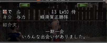 ![]() 織田の侍 でらくん。 彼とは もげやマスクたちと一緒にいった 「シムリーうしろー!!」で知り合いました。 その日から ノリがよくて強くて 正義のヒーローの イメージが強かった でらくん。 そんなでら君から 「今日で引退!」の一報を聞き、 狩りの準備をしていたお花とあたしは 15分だけ時間をもらって サヨナラを言いにでら君ダッシュ ┗┃ ̄□ ̄;┃┓=з=з=з=з ![]() もげに続いて彼の引退で お花とあたしに哀しみの嵐が吹き荒れます。 ![]() 形見もいただきました m(_ _"m) ![]() ![]() ![]() ![]() 甲府に戻ると お待たせしていた みんなが 門でお迎えしてくれました。 紅子ののぶおんは これからも 続きます。^^ |