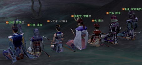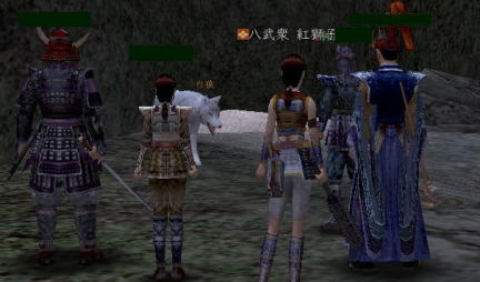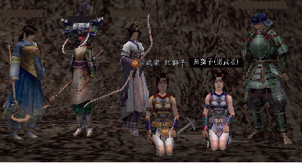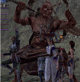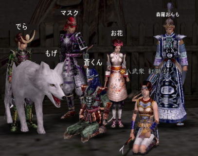 2005.1.16 知人+野良の組み合わせだったけど、おなか抱えて笑った楽しい狩りでした。w 左から、ケイ僧さま・マスク・お花・野良巫女さま・紅・紅(?)・盾侍さま |