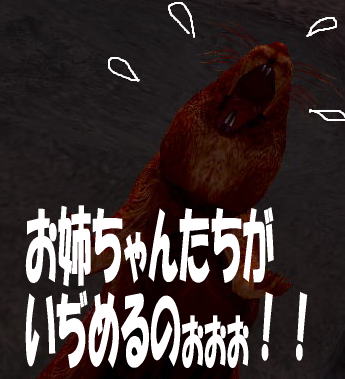 ![]() ちかご〜ろ〜 わたしぃ た〜ちは〜 い〜〜〜〜感じぃ♪(ほげぇぇぇ〜 こんばんわ、紅子です。 紅が頭巾を被ると こんな感じということが発覚。 ![]() 今日はお友達のナナちゃん、若ちゃんとオシャレ遊びということで♪ 左から、ナナ・若ちゃんです。w ちなみに、ナナ=お花だから 中身はコンピラポーンなのには変わりなしw 若ちゃんの実キャラ名は、あたしが名づけ親なのさ♪ 人当たりがよく、とっても優しい若ちゃんですw ![]() 僧の銃・おんもの剣。 それぞれ部隊アイテムだそうで、普段使うことなど滅多にない 超レア物。 ナナに、紅のお古の一匁弾を全部あげて、 せっかくだから何か狩ってみようよ〜ということに。 ちなみに、紅の被っている頭巾は 若ちゃんからの借り物です。 紅子も赤いハッピを着ていざ出発〜^^ノ 異色のオシャレトリオが向かった先は、 ![]() うん、地獄谷。 近いからねぇ。w ![]() おしゃれなあたしたちに キュンキュン言ってる火ネズミたちがお相手なわけでw ![]() きたわね、ナナ・・・・! ![]() 「バヒュン。」 か〜わ〜い〜〜い〜〜〜〜〜〜。 低音呪詛、アウチw ![]() 若ちゃんは、あくまで おんもーのおんもーたるおんもーらしく 術攻撃〜! ステキヨー! ![]() あたしは、いっちょ 極みいれてから ![]() ズガーンッ! みたかっ、手槍三連撃の威力! ウハハハハ〜!! ![]() ![]() ドカーンッ!ボガーンッ! とっても攻撃的なあたしたち。 ナナさん さっきより火薬の料が多くてよ。 オホホホホ(´▽`*) ![]() そんな火ネズミから、その名のごとく、 火を操った攻撃術が炸裂っ! ![]() ひゃぁぁぁぁぁぁぁぁ〜〜〜〜〜〜 で、燃える若ちゃん。 アチソー・・・・ でもね、若ちゃん、刀を持って ファイアーダンス踊ってるあなた、 とっても輝いてるわぁ^^ ![]() そんなこんなでお遊び狩り終了♪ 楽しかった、またねぇ^^ ![]() これから叢雲堂に行くナナとお別れさ。 いてら、頑張って方解5とってこいよぉ〜! そして、町に入って食料調達したあたし・・・・ ![]() ダンディー まいど♪ 価値42にあわせられるもの、なんかないかなぁ〜・・・・ あ、あった! 価値6!7個ずつになるけどこれで価値はピッタリだわ♪ ![]() しょっぱ!!( ̄* ̄ ) ちなみに、その後若ちゃんとTDへ行き、初幻影館を経験できた紅は 鼻歌まじりで甲府へ帰途すると。。。 パパ神主とへその二人でファッションショーが始まるところだった。 ![]() その愛くるしい微笑に、紅子はちょっと胸キュンキュン(オ 実はおしゃれおんもー へそ先生の指導のもと、 次々着替えていく、パパ神主。 ![]() ![]() ![]() ![]() ![]() キャーキャーヘ(≧▽≦ヘ) きゃーーん♪ いいわ、いいわ、 カラフルでいいわー!ww ![]() へそ先生もご満悦のご様子。 へそ先生、気を抜いちゃいかんですよ。w |