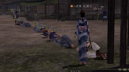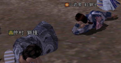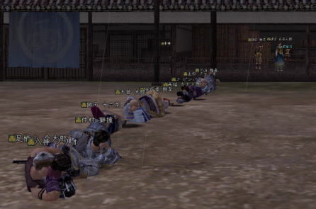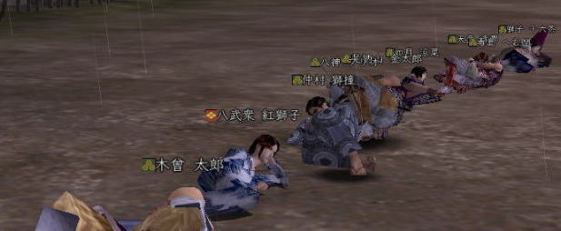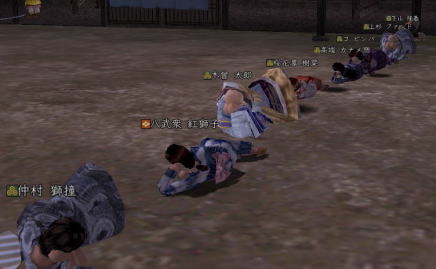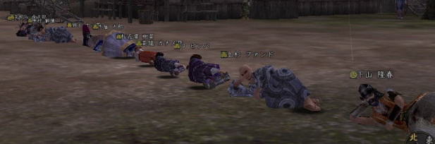 | 合戦いったら すぐホラ貝♪ あるな、うん、あるある。 勢いで 陣形つかちゃってたりしてな。 さて、イクカ〜 って時に プォーンてな。w ・・・・はい、 お笑いでは レギュラーが一番好きな ベニコです。 そんなわけで、 ちと 不完全燃焼だったので 生まれて初めて前哨戦に参加。 なんと、ゴンちゃんと同じ組になりますたw ・・・って喜んでたのも束の間。 密教・修験・神典と 対人バンザイのトリプル徒党とぶつかって あっちゅーまに 負けちまったいw まー、あれだけ 負けると 逆に気持ちいいじぇw ・・・・なんつって 初 前哨戦を 「降参」で終え、 小谷のお墓に舞い戻った ベニコ。 さて、寝っかな〜 と両替方向にテコテコ戻ってみると。 「ギネスに挑戦!」 って声が聞こえるじゃないっすか。 なんじゃいなー、と 両替の角を曲がると ![]() なんだこれ!! ええ、ベニコ わざわざ 浴衣に着替えて 参加させてもらいましたとも(*ノノ どうやら、 浅井さんに移籍した方を記念して 始まったらしい この遊び。 題して 「みんなで並ぼう by小谷」 はい、こういう企画モン 大好きっす! ![]() 思いっきり お茶鍛冶くんに見られてますけどね。 だってさ だってさ ![]() ナカムラシドウ・・・・ しーしー様ですよ しーしー様!!! (ベニコ、獅童大好きなんです(*ノノ ) 初対面にも関わらず ![]() しーしーと寝そべるベニコ。 もう 夢見心地。 ゲホゲホ。 すみません、取り乱しました。 ![]() まぁ、現実はこっちで。えへ。 正座で並ぼう徒党は いつの間にか 「みんなで寝よう by小谷 (ちょっと怪しいw 」 に変更になりまして。 ![]() とってもノリのよい 下山さまが リードを取っておられましたw ![]() 前にも後ろにも 浅井さんがイパーイ てか、武田が混じってすんません ^^; 国境を越えてという言葉に 甘えちゃいました!! ![]() うん、圧巻。 ![]() 浅井さん、素敵です。 (*゚▽゚ノノ゙☆パチパチ 遊び心バンザイw と、つぶやきながら 小谷でオチたベニコだったのでした。 |
