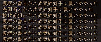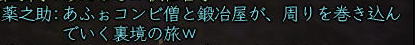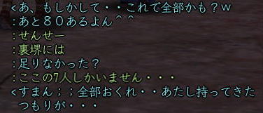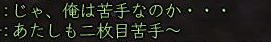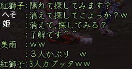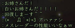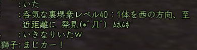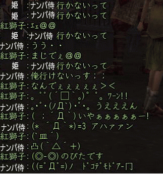 ![]() コンピラポポッチ♪ 青い大金箔は、紅の本気の印♪ 本気紅が一体 どこへ行ったのかというと・・・ ![]() はい、パックンチョですね。 「おうちにいらっしゃ〜い」って言われて 「いいよ〜」というと こんなに喜んでくれるサンチョが ちょっとかわいかったりして・・・ ![]() すっかりサンチョに魅せられた紅に 乗せられてここまでやってきてくれた 精鋭6名。 左から ナンパ侍・風巫女・村娘・紅・姫・みうちん・へそ もともと 前回遊んだ伊織ちゃんのお姉さま?の姫さまと みうちんとの企画だったのです。 ![]() こちらが、伊織ちゃんのお姉さま。 帽子がすごくオシャレで清楚な僧さまですね^^ ・・・・・と、思いきや・・・・ ヤマンバギャルですかwww そして、こんな姫さまとみうちんのお友達が ナンパ侍なわけですが・・・・ ![]() まぁ、最初はムリにひきとめたてたようなのですが・・・ 最後のほう、もうわけわからんww ![]() ・・・もうしばらく このナンセンス会話続くんですけどね・・・w こういうこと、よくあるあるwww 気がつけば 逆に紅がナンパされそうです! ![]() そして、やはりカラオケ大会に突入しそうな気配・・・・・・www まぁ、どうせ死んで帰ってくるサンチョツアーだから このナンパ侍のノリはとっても魅力的だったわけでw ちなみに ログ時間が微妙にずれて 今回参加できなかった新ちゃん(のセカンド薬師)から 旅の始まりを告げる対話が飛び込んできたところで・・・ ![]() いよいよパックンチョツアースタートです!w そうそう、実はこの時の紅・・・・ ![]() 修理材忘れてきましたからぁ!(≧∇≦) これ、今ここで初めて明かす事実です・・・・ww へそに少し頼んでおいてよかった;; で、へそからコッソリ修理材を受け取って・・・ いよいよ戦闘開始だぁ〜>< どこに何があるのか、 どのNPCがおいしいのか、 その強さは?? など、一切の情報がない裏堺。w もう、手前から順にバッサバッサと投げ倒す作戦ですわ〜 ![]() ![]() バンバン惹きつけるのだ、 ナンパしまくるのだ〜!ナンパ侍よ! ![]() ※うんちメッキは任せた!みうちん! ※英明のことっす。 ![]() 村娘の3連もかちょええー! ![]() 風巫女さまも気合韻はじめ、大活躍〜 そして、何よりかわいいw でも、いくらパックンチョな裏堺とはいえ、 何か目標がほしいかな・・・ そう思った紅の無謀な提案。 裏堺でナニをするかって、 やっぱコレじゃないですか??w 天下一品ハルバート♪ だが、しかし・・・・ ![]() なぜかハルバートは 男前かどうかという話題に;−; ww そして話題は・・・ 話題は・・・・ ちょっともっさい人が人気の方向へ。 我こそはもっさいと思ってる 世の男子諸君! この徒党に入ったら モテモテなることマチガイなしぞ!ww ![]() ちなみに、 へそが出した、幽霊式神。 ![]() これに飛びつくナンパ侍もいるから 世の中のお姉さん方も 安心していらっしゃいw ![]() あ、こんなことしてたら 羊頭の悪魔はっけーん!www コイツがハルバート持ってるという噂を聞いたことがあるのですよ! ![]() だから速攻叩きましたとも!www ![]() ゲーンww ふんっ、 そんな攻撃 痛くもかゆくも・・・ いてぇ〜@@!! 看破きて極みきれちゃってたけど、 ここまで痛いとは・・・ ほんと、裏堺わけわからんww ![]() とはいうものの、 極みして みうちんのうんちメッキをもらってる限り あたしは死なない!w ・・・・あとは、村娘さま頼りです!ww ・・・というわけで村娘の華麗なる3連撃で 羊頭の悪魔を撃破!! 当然、何もでず・・・・www でも、ここまで来る間に 出口に必要な砕けた黒水晶を結構拾えたのよねぇ。 選択制にしてたけど、 ナンパ侍以外は確か手にできていたはずで・・・ (死に戻り、甲府ワープが確かに一番の近道ですがww) 時間も時間になってきたので (この時深夜1時くらいだったとオモフ。) ![]() ↑ 入ってすぐに ポツンと立っていた この呑気じいさんに砕けた黒水晶を渡すと 出れるらしいということを思い出した その時! ![]() いつの間にか 素敵な連帯感が芽生えてたりw で、風巫女さまから隠しをもらって 強行ダーーーッシュ!!!! ![]() はぁはぁ・・・・ 紅、めちゃめちゃつりましたよ!! ![]() ひとまず くぼ地でいったん休憩。 みんなはドコへ行ったんだぁ〜?? と、そこに信じられない会話が・・・ ![]() いきなりいたんですって!>< 紅の 勇猛果敢なこのダッシュって一体・・・・・・・・・・・・ 再びダッシュで 道を戻ると みんなの集団が・・・ 裏堺にはうちらしかいないハズなので この集団で間違いない!w ![]() ![]() フフン。 もってるさぁ〜 ああ もってるさ。 さっさと受け取れ〜! そして この裏堺から 生きて返してくれぇぇ〜〜www 絶対死に戻りと覚悟を決めていたので 妙にもうかった気持ちでいっぱいw その後、無事 堺に戻り、みうちんと一緒に 新ちゃんたちへのお土産を買いに行ったのですが・・・・ ![]() 言った側から、 やっぱり食べちゃったみたいで。m(_ _"m) ww |