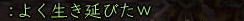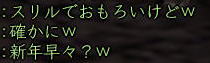 ![]() あけおめ♪ 紅子です。w ログすると知人リストがずらり真っ白。ww おぉw いよいよ新年会ですかな、 っと、へそに対話を送ると 「遅いw」 うへ、ごめんごめんw 「新年会するから 千引いくよー^^」 おぉっと、またずいぶんハードな新年会じゃないの。w 何がハードって、 あたしがログしたの、富山w 越中〜加賀〜越前〜近江〜・・・・ んと、とにかく 国を5つか6つ越さないと 千引までつきませんw 「小谷で待ち合わせして、強行あげるね」 そう言ってくれる へそ先生。 (つд∩) 紅子感激ぃ♪ ・・・・・と いいつつ ![]() 「もうすぐ近江〜」 なんていってる紅の場所・・・・・ ![]() ここですからw ごめん、全然もうすぐじゃなかった。 結局、近江の国境を越えて来てくれたへそに、 越前の街道沿いで拉致をいただく紅。 まじ感謝してるしぃ〜 (アクセントはどこでしょうw) ![]() そんなわけで、無事千引に到着〜 ・・・・でも込み合っていて、 札はがしまで スカスカぽんw いつぞやの富士地下のごとく マラソン状態であっというまに札はがしまで到着w いくつか札をはがしてると、 さっきから気になる熱い視線 ・・・・ ・・・・・・・・・・ ![]() コイツだ 僕の赤毛すごいでしょーと言わんばかりに ブンブン髪の毛振り回すロック歌手若雷・・・ でも、この若雷って、レベル55・・・ 神職いない今日の徒党ではやっぱりちょっとやばい感じなので・・ ![]() 隅っこでちっちゃくしてた 彼とやることにw これが、あんな死闘になるなんて・・・ この時の僕たちには想像もつかないことでした・・・・・ ![]() とりあえず開幕極み〜極み〜極みんみん♪ なんだかんだで、オキニな紅の立物つきの筋兜w で、石動かしっ挑発って・・・2体いたw うそんw 知らなかったよ、パパン♪ ![]() ニパw っと笑う石動かし 極み極み、挑発、極み、挑発、極み・・・・挑発 って、かけた瞬間に・・・ きたっ、看破(o_△_)oギャフン ちょうどメッキも切れていて 極みきれた紅子なんて 豆腐に釘打ついったんもめんのような柔らかさw あわれ紅子は ☆となったのですw そして釣られるように 赤さんが・・・パパが・・・・ ギャポーンw ![]() まず盾を・・・・ と冷静沈着に紅を生き返らせてくれるうっとり薬師。 ![]() そして、回復の右腕、赤さんを・・・ この時点で、戦況は散々たるものに。。。 ![]() しかし、ここからの挽回劇がすごかった(>< ![]() 赤さんの大往生の連発と、 ![]() うっとりの蘇生 ![]() うっとりにヘイトたまらないようにと、 へそ先生の全体術連発 ![]() おっさん侍からの鼓舞によって みんな グーンと気合回復 むんっw ![]() 最後は、村娘の3連撃が あたしたちを苦しめまくった 石動かしのミゾオチにクリーンヒットww ![]() ズサッ あとは、雑魚たちをやっつけるのみ。。。 そして数分後・・・・ 無事に勝利を終えたのでした。 ![]() その後の雑談でも、スリリングさと、 立て直して勝利を収めた満足感の雰囲気ただようあたしたち。 さて・・・ その後はどうなったかと言いますと・・・ ![]() 結局 全滅 修理してたら絡まれて割れた紅のせい(ノ◇≦。) おもしろいので、別の角度からお送りします。w ![]() みなさ〜ん、石拾いって結構痛いですよぉ〜・・・ そんなこんなのスリリングな新年会でしたw みなさま、ことよろv( ̄ー ̄)v |