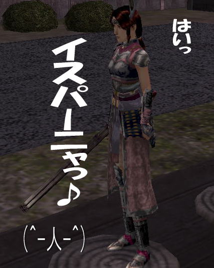 ![]() こんぴらぽんこら〜w スカートはいてみました、ベニジ氏です! 憧れの イスパーニャを購入して そりゃもうルンルンさ! ![]() ちゅーわけで、ベニジ氏邸〜。 ふふふ。 せっかくのイスパーニャですもの、 存分に楽しまなきゃd(゚ー゚*)ネッ! そうそう、屋敷といえば、 実装当初、大ハシャギでいじりまくったわけですけど。 ![]() 管理人のおっちゃん、 押すな押すなの大人気だったものねぇ。 武田の人たちは、 新しいこと大好きな気がする。 そのノリ、嫌いじゃねぇ ( ̄▽ ̄) (マジャ風 ベニ家も、最初はここからスタートしました。 ![]() 広び〜ろ(・∀・) ![]() 意味なく走りまくった挙句、 ![]() 建てた家がコレ。 ぽつーん。 なんだよ、みかん。 ![]() ![]() その後、夜中にしゃべるという能面を取り付け、 ![]() 座布団を敷き、 花を飾り、 ![]() ![]() 縁側に 和式トイレを置き、 ![]() ![]() この2人にはイビラレ、 てか、棒ゆーな(#゚Д゚) w ![]() あれから数ヶ月・・・・ ベニジ氏邸は 放置されてきました・・・・・ んでもって、 ベニコがイスパーニャを買ったというだけの理由で 突発的に行われた撮影会。 そして 再び陽の目をみた ベジジ氏邸。 嗚呼、ちょっとだけ ジャイアンの気持ちがわかりました。 (ノ_-。) そんなジャイアンな提案にも 喜んで参加してくれた ステキなオシャレさんたち。 ![]() 持っている本人(お茶ニンジャー)よりも かっちょよく着こなした びっくり仕様の鎧がステキな 村娘。 ![]() コンピラピラポーwの生みの親、 おちゃらけさせたら 甲府一! 天狗のトキンがステキなお花。 ![]() そして、 エロマスクと、黄色いのと、ハァハァの人。 (左から 敬称略) この3人、名づけて はい、 タイヘーンなヘンターイです。 ![]() まぁ・・・・アレですよ。 ![]() 普段の行いだから・・・ ![]() ![]() 仕方ないね ^−^; ちなみに、 先日むっつんが 甲府でこんなもの売ってました。 ![]() ・・・・2文@@! どんな石だろう。。。。 ちと、のぞいてみよう。 ![]() ( ̄▽ ̄;)!!! むっつん曰く・・・ バカになる石。 ![]() でも、ネタとして 憧れてるアフォな鍛冶屋が約一名・・・・(*ノノ まぁ、そんなこんなのメンツで撮影ですよ。 ![]() みんな、大好きダー! (青春チック) ![]() でも、 今日のベニコはジャイアンなので・・・ ![]() カメラ独占、えへへ。 ちなみに、 この撮影のあと、甲府の両替に戻ったら マッスル兄貴とバッタリ。 ![]() さぁ、同じ鍛冶屋のアニキは どんなリアクションをくれるでしょうか。 ベニコ、ちょっぴし ドキドキ(*ノェノ) で、アニキの第一声。 そこかよっ ┌(`Д´)ノ 近いうちに イスパーニャで馬に乗って トッコーしていく鍛冶屋を見かけたら・・・・ それは きっと あたしです(*ノノ |