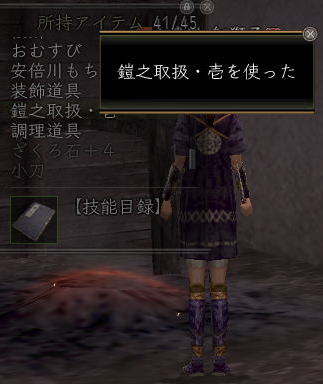 ![]() コンピラポ〜ン 紅子です。 (お花薬師風w) 悩んだ末に、鉄砲→鎧鍛冶への転向を決意。 昨年末から楮集めに励んできたわけですが、 皆様のありがた〜いご協力の下、 いよいよ楮が最後の大詰め。 東尋坊にて、今まさに楮が揃うところです。 アリガタヤ アリガタヤ/拝む そんなとき。 ![]() なんと、林地完成Σ(・Д・ノ)ノ うわぉw 狩り中でも、知行は動いている。 昌子、よくやった! 地主 紅子も、立派な鎧鍛冶になるからのぉ〜! そして、最後の楮を獲得 でわでわ山賊町へ走ってくるだよぉぉ〜! ![]() 雪降る信濃、山賊町へ・・・ 目録のおじいちゃ〜〜〜ん ε=ε=ε=(ノ^∇^)ノ ![]() ちょっとドキドキしながら おじいちゃんの肩を叩く。 ![]() 「道を究めようとするもの、よくぞ参った。」 うんうん>< あのね、おじいちゃん、紅子鎧の特化目録が欲しいの!! と、おじいちゃんに甘えてみるも・・ ![]() ( ̄□ ̄;)!! 先ほどまでの楮集めの時に拾った 細かい入魂材が袋を圧迫していたのね・・・・ 焦る、焦るよ。 こちらは転職という 一世一代の決意をもって来たんですから! (大袈裟^^;;) 入魂材を捨て、仕切りなおし・・・ ![]() ![]() ・・・・・はい・・・・ ![]() ![]() ・・・・・・・・・・・・・はい、いいです・・・・・・・・ |
