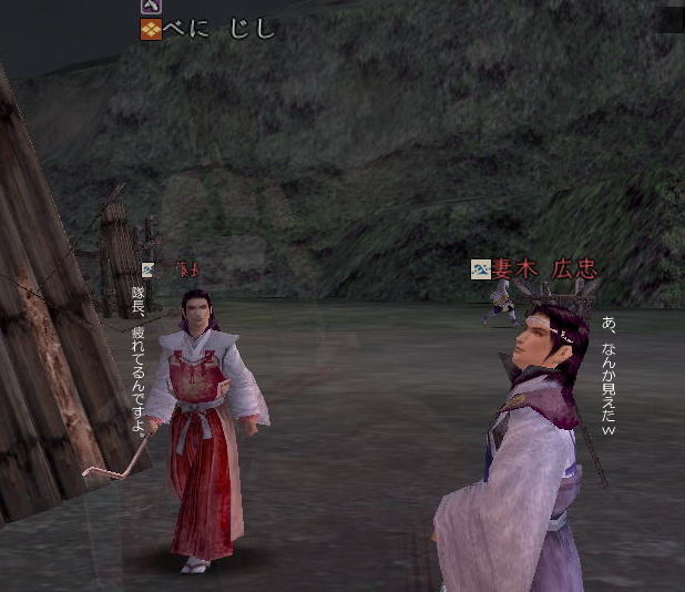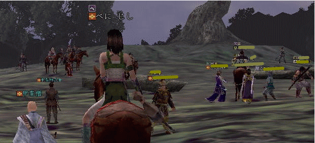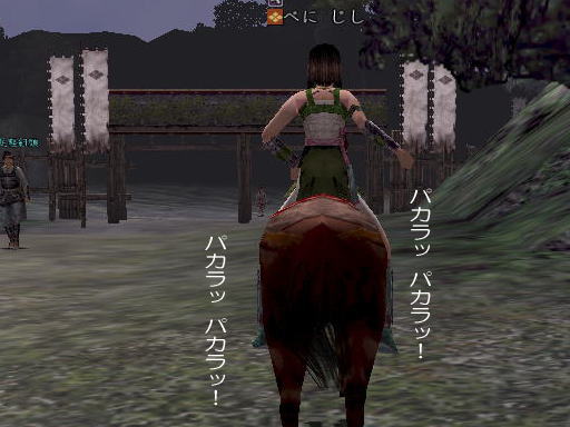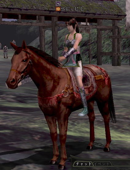 ![]() あくまでも、ウマっ! べにこはウマが好きっ (言い切った!) 今度はちょっと作戦たてよう・・・ せっかくだから武将とりつきくらいやってみたいな。 さっきは、真ん中の陣に人が集中してたみたいだから、 左の陣にいってみよう。 ウマのスピードがあったら、NPCは振り切れるような気がする。 ウマに乗っていたら、 武将を倒すことだってできるかもしれない。 (言いすぎ) そして、いざ特攻! |