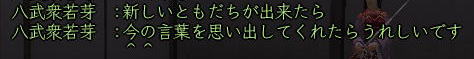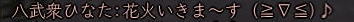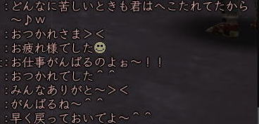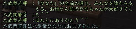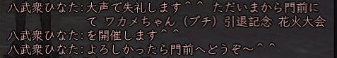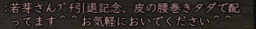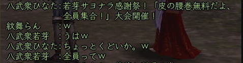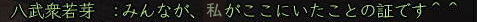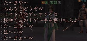 ![]() こにゃちわ〜ん! 今日はワケあって、ひなたです! ![]() それというのも、 紅子の妹的存在・同じ苗字を持った ワカメちゃんが この日を持ってしばらくノブオンを お休みすることになったのです。 ![]() リアルの用事で、復帰の見通しがイマイチ立っていないため 「プチ引退」という形になりますが。。。 今まで2回ほど、紅はワカメの別キャラ「若松くん」の 「皮の腰巻配布祭り」のお手伝いをしましたw 今回は、ワカメ作の腰巻を配布! ふふ、ワカメらしいラストじゃw そして集まった、ワカメの知人さんたち^^ ![]() ギリギリでお花も間に合ったw ![]() みんなで ワカメ作の 腰巻を受け取れるだけ、受け取りますw ひなたは荷物がスカスカだから 動員されたというわけなんですねぇ〜。 今回は、どど〜んと 100個の腰巻を配布の巻! ![]() 甲府の両替前で配ります〜! はぁ、3回目だけど、ちょっぴし ドキドキ^−^;;; そして、みんなで 売り子用のマクロを試行錯誤w ![]() そして、ワカメの親友 常盤ちゃんからこんなアイディアもw ((ミ゚ロ゚ミ;) )ニョーーー!!! ![]() さて、準備が整ってまいりまして・・・ ![]() 腰巻祭りの始まり始まりぃ〜! 一人、違う人がいますがw 両替前の大声って、 やっぱドキドキするよねぇ (≧∇≦)♪ ![]() 呼びかけを初めて すぐに 囲まれるあたしたち。 嬉しはずかし、両替前の ワカメ徒党(*ノノ) ![]() 常盤節も絶好調 (´▽`) (* ̄m ̄)プッ ![]() ![]() ひなたは、在庫を残しちゃイカン、と 両替中でコッソリ パパの息子に腰巻を渡したり・・・ テヘw ![]() 腰巻もらっていただいたみなさま、 本当にありがとです!! さて、腰巻配布が落ち着いてきた頃・・・ ![]() ![]() ひなたは、お花を門前に連れ出し 花火のチェックw 昨年のイベントの花火の残りを若干もっていたんだいw ![]() うっし、ラストイベント いくじぇ〜! ![]() ええ、花火のSSは 撮れませんでしたが 何か?^−^; ![]() たぁまやぁ〜! なんて言ってもらえると、花火師冥利につきますわ!^−^ 人も集まってくれたみたいだったし、 嬉しかった〜^^ そして、ミニ花火大会も終わり ![]() ワカメイベントが無事に終了したのです;−; 甲府のみなさま、お騒がせいたしましたm(_ _"m) 腰巻を受け取りながら「お疲れ様でした^^」と 何人もの方から対話をいただいたと、 ワカメはとても喜んでおりました。 その後、ワカメ徒党が向かった先は・・・・ ![]() ![]() 「ワ」 「カ」 「メ」 ![]() 若芽屋敷。 ↑コレ、自画像だそうです!w ![]() そして、サクラの木の下で、 記念撮影♪ ほんと、みんなもお疲れ様でした^−^ ![]() さて、・・・・・最後に残った、 マヤちゃん・お花・ひなたを前に、 若芽先生の授業が始まりました・・・・・ ここからは、金○先生モードでどうぞ! ![]() なお、後ろの方には、ヤンキーがちゃんといます! ![]() ![]() ![]() ![]() ![]() ![]() ![]() 続いて、 ![]() お花と ![]() マヤちゃんに、 それぞれ、若芽から言葉があり・・・・ ![]() ![]() ![]() ![]() ![]() ![]() ![]() ![]() そして若芽は ![]() ![]() ![]() ![]() ![]() ![]() ノブオンの世界を去ったのでした。 若芽、ありがとね^^ 次に会えるのを楽しみにしているよ〜。 |